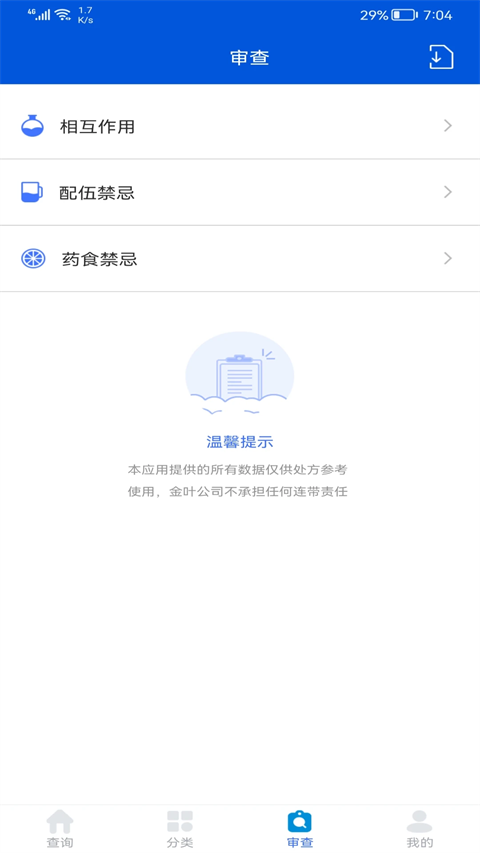 3、审查:药物相互作用、配伍禁忌、药食禁忌一查便知;