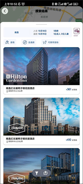 1. 一键地图搜酒店,快速定位并展示具体位置周边住宿,方便及时预订。