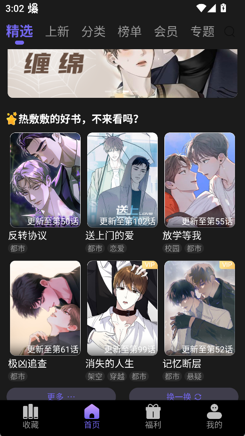 1、在首页界面,可以浏览平台推荐的各类热门漫画,随时点击进入阅读;