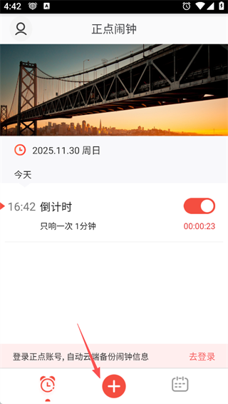 √云端同步备份,注册并登录正点闹钟,云端同步备份闹钟列表,换手机也不怕