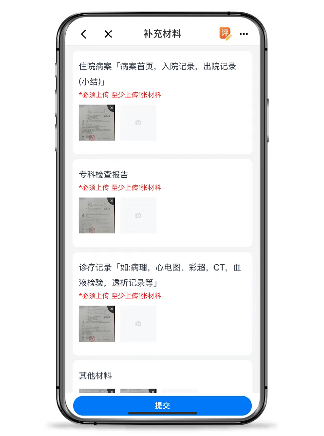 2、进入到个人中心页面;根据参加险种及病情选择互助金领取类别,并点击进入;