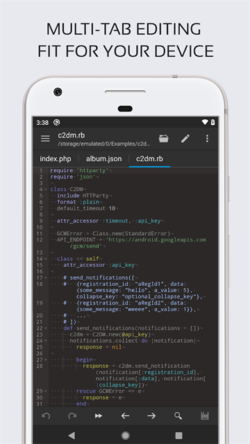 Code Editor是手机上很好用的一款代码编辑器软件,支持100多种语言编写程序。使用方法如下: