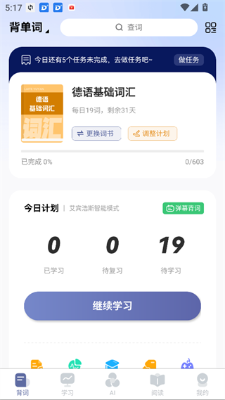 智能记忆计划:艾宾浩斯遗忘曲线|每日词量自由设定|覆盖歌德证书A1-C1/德福高频词库
