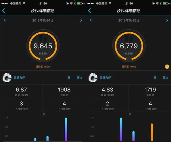 点击相应的项目,还可以查看每个项目的详细信息(如下图,即步数的详细信息),一般配以统计视图的方式呈现。而且,通过<>按钮,还可以前后翻看更多日期的详细数据。