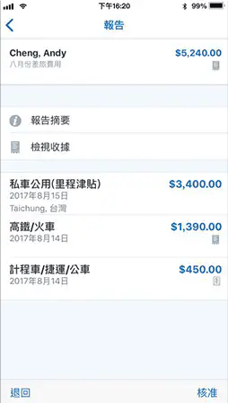 主管可以从任何装置轻易地检视和批准费用申报,缩短三分之二支付给员工的时间。
