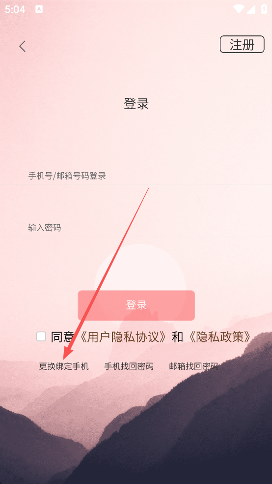 3、到了登录界面之后点击更换,输入新的手机号码验证即可