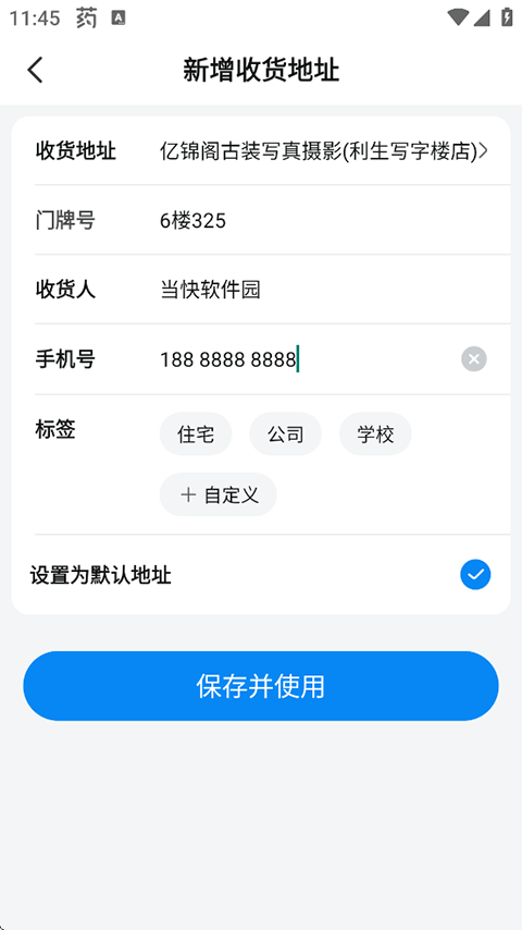 7、首次登录的用户需要先新增收货地址,填写信息后点击“保存并使用”;