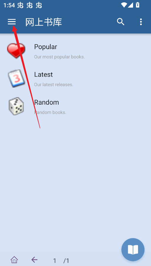1、打开应用后,先点击界面左上角的“三横线”菜单按钮,进入功能列表。