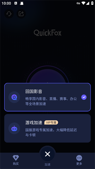 QuickFox这款软件让众多游戏爱好者还有影视爱好者们都能够享受到自己喜欢的资源,不管是游戏加速还是寻找海外的优秀影视作品等都能够通过这款软件搜索关键词,让精彩马上展现在你的眼前,一键加速无需调制各种设置,让所有的安卓用户们告别延迟一秒加入到海外国际游戏服务器之中,和等待已久的好友共同并肩作战,无广告无收费,这个版本中将为你带来最纯净的界面,感兴趣的小伙伴们快来下载QuickFox试试吧。