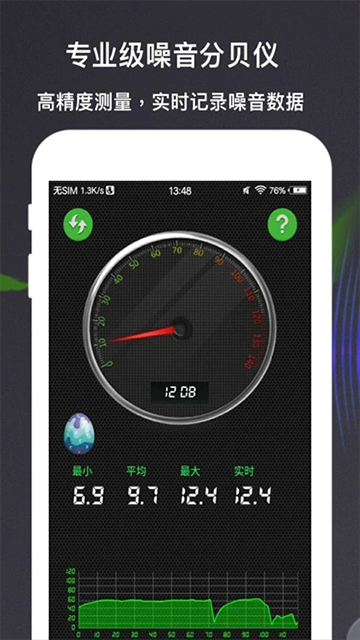 1. 实时监测环境噪音分贝,直观显示当前声音水平。