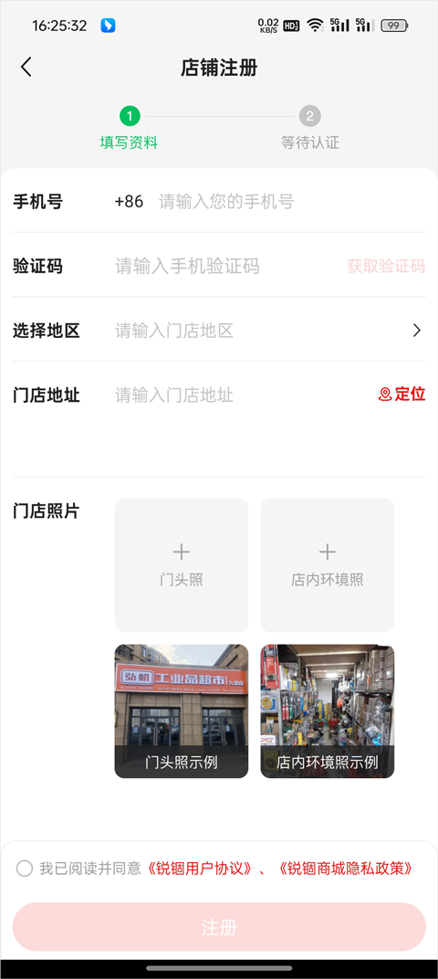 3、然后上传你店铺的门头照片以及店内环境照即可