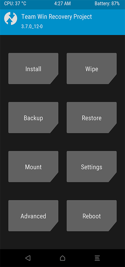 3)使用adb 将AnyKernel3-*.zip(内核文件)放到手机/sdcard 然后在TWRP 图形界面选择安装;或者你也可以直接adb sideload AnyKernel-*.zip安装。