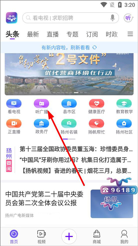 2. 视听:提供扬州电视、广播节目的直播与点播。