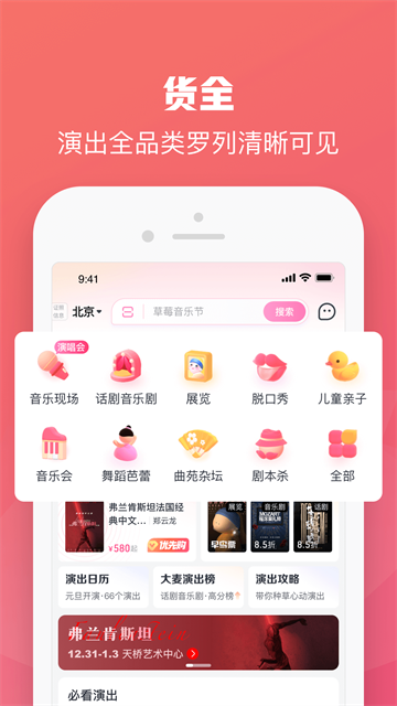 7、热门演出持续上线:周杰伦、五月天、薛之谦、草莓音乐节等众多演出陆续开售,及时订阅提醒,抢先购票。
