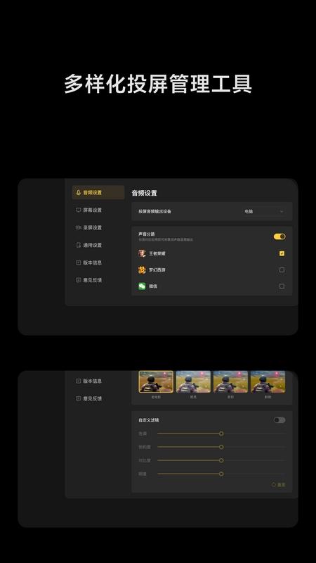 3. 可管理不同应用音频权限,支持三种投屏声音输出模式。