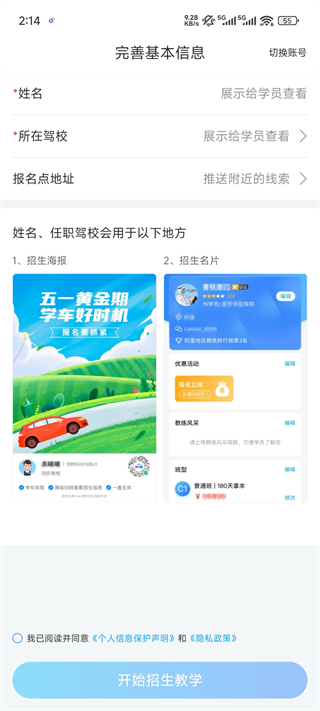 2. 支持一键生成个人招生名片,便捷展示教练资质与联系方式,拓宽招生渠道。