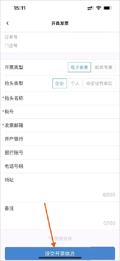 3、在开票页面中填写抬头名称、税号等,点击【开具发票信息】即可发票。
