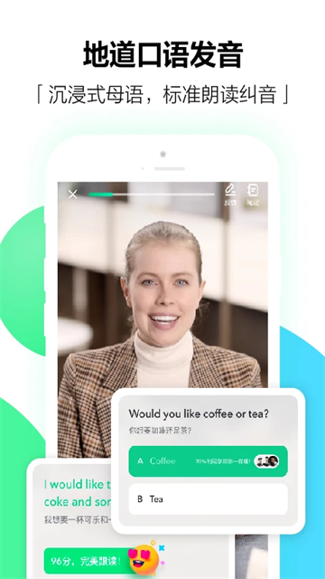 【地道口语表达】专业外教出镜授课,内容覆盖日常、职场、旅游等数百场景,通过真实场景互动教学和AI智能打分纠音,让你沉浸式学习地道英语。