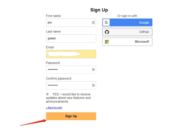 3、在注册页,使用email注册即可,名字什么的可以随便写
