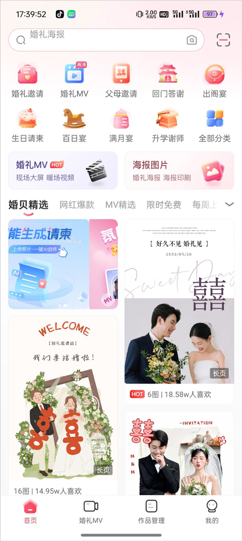 婚礼对很多人来说是人生中的大事,相信每个人都希望自己的婚礼能尽善尽美,随着发展,婚礼请柬的形式也变的多样起来,为了节省成本也为了社交方便,越来越多人选择了线上请柬的制作方式。婚贝请柬就是款专为研究请柬制作而研发的软件,它拥有各种风格的请柬模板,中式、森系、卡通等可以根据自己的审美喜好选择喜欢的请柬模式,支持动态,平面,长页请柬,海报请柬等多种形式的制作,让你的请柬拥有百变的可能,就算是小白也能轻松制作属于自己风格的请柬。如果你是正在备婚的新人,那我强烈推荐下载婚贝请柬试试,相信能给你的婚礼带来新的惊喜。