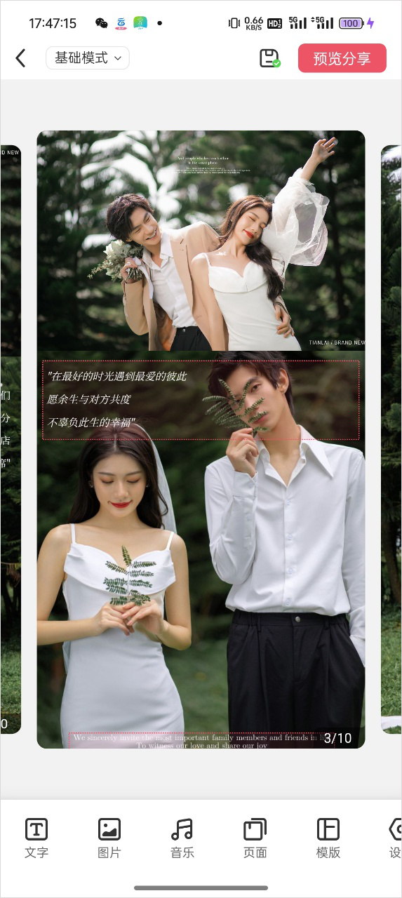 告别同质化,支持编辑文字、添加单页,做你的专属请帖。