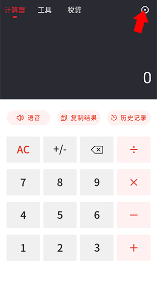1、在本站下载、安装并打开全语音计算器,之后点击右上角的齿轮按钮