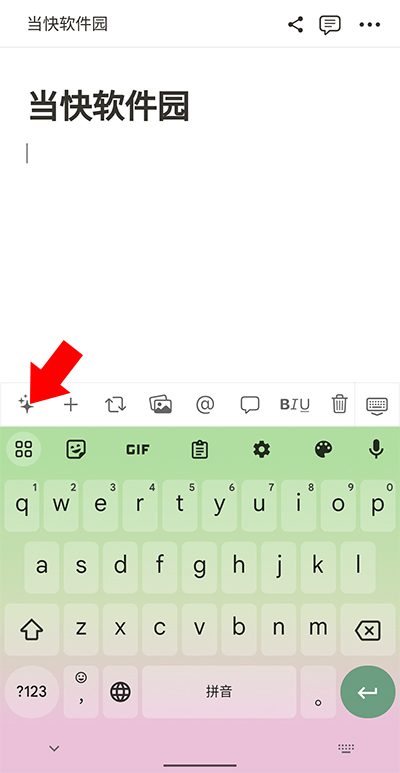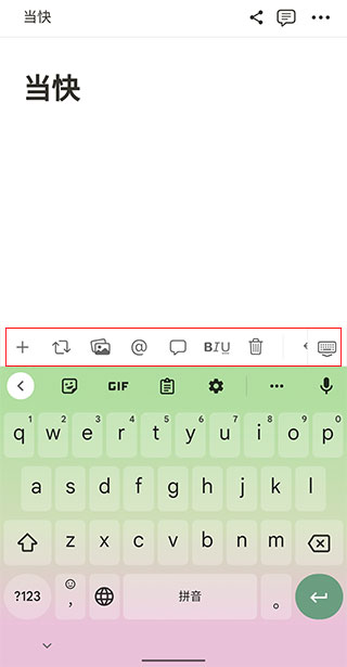 2、来到编辑界面之后,先输入标题内容之后点击下方的文本区域,可以看到输入法上方有工具栏弹出