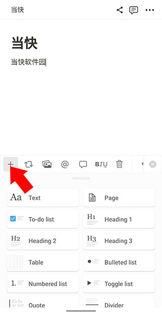 1、在本站下载安装并登录notion后,任意打开一个文本文档,来到下方界面后,点击下方的内容区域