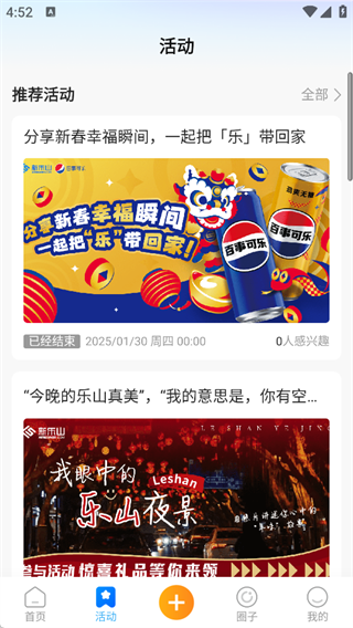 3、集社交、互动、资讯、服务议题的即时移动互联平台,用户可以了解乐山最新动态