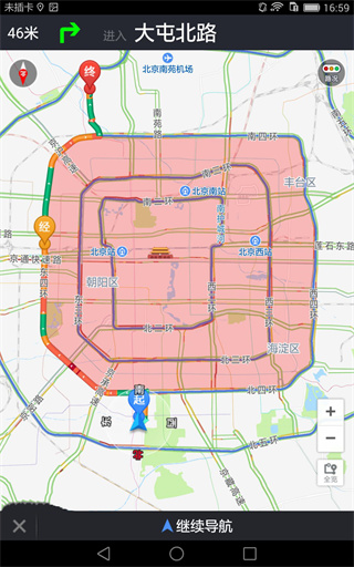 4、导航会按照设置的路线引导,这就是手动设置途径点,绕行限行区的全部操作流程。