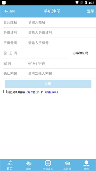 4、最后也可以点击注册志愿者,直接输入直接的信息点击注册即可;