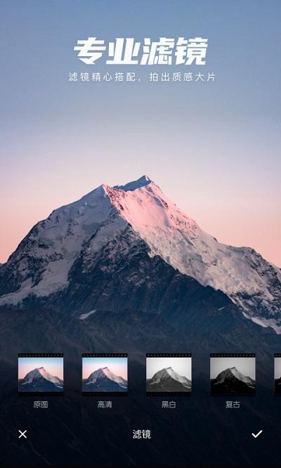 滤镜:丰富的图片滤镜,不同照片风格任你选择,如电影,复古怀旧、胶片,浪漫等风格