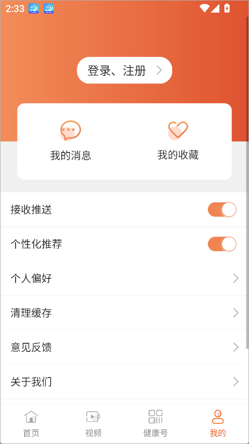 用户可查看浏览历史、定制推送偏好、管理关注的健康号,还可接收平台举办的健康活动通知与直播提醒。