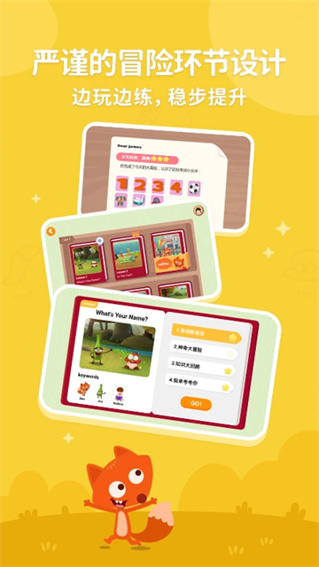 小狐狸ABC这款软件提供最全面最专业的线上教学方式,让所有的孩子们都可以轻松在这里进行学习,寓教于乐的学习方式永远都是许多孩子的最佳选择,合理制定学习计划并安排休息时间,劳逸结合让学习效率更上一层楼,可以和里面的动画角色一起互动,情景对话还有单词默写以及标准发音等方面来针对性自习,培养孩子自小的正确学习态度,从起跑线上超越其他同年龄段的小伙伴哦。