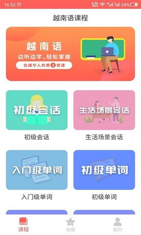 1、天天越南语简单易懂的课程,用户可以自学越南语,包含日常用语和基础单词;
