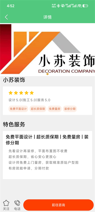 2、软件中拥有专业的家装服务,用户可以放心选择需要的装修公司以及家装人员。