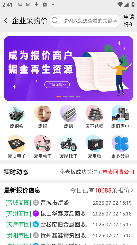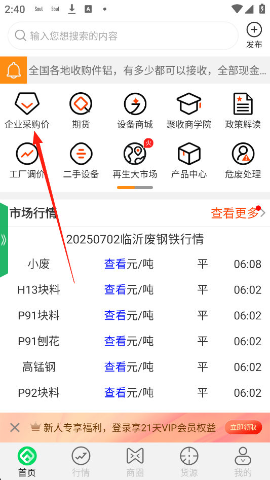 2、点击【企业采购价】,这里有每日企业最新收购价,全国各地区、各品类报价应有尽有!