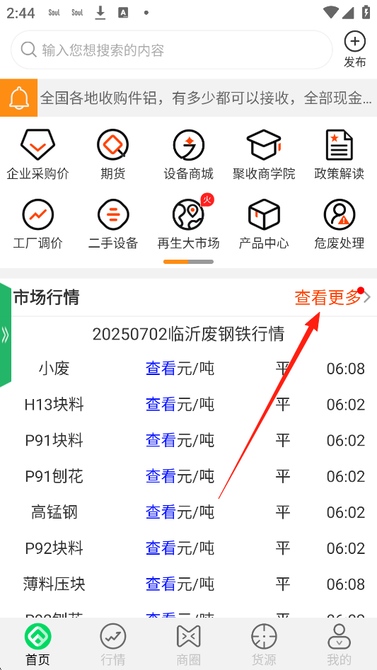 4、点击【查看更多】,这里有全国市场行情报价,15000余个品种,助您掌握一手行情!