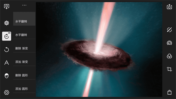 利用裁剪功能,我们可以实现对画面内容的剪切、旋转和翻转,裁剪面板下一共包含五个工具:比例、旋转、翻转X、翻转Y、重置。