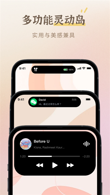 1. 安卓设备专属灵动岛:充电、消息、音乐播放时智能弹出悬浮提醒,无需iPhone也能体验交互式通知。