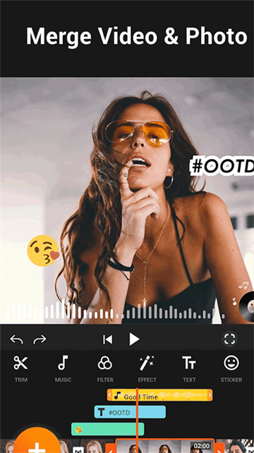 1. 支持多轨道编辑,可添加视频、图片、贴纸和文本,精确剪辑并制作各类主题视频。