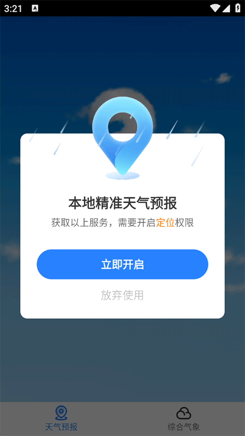 1、下载安装并打开即刻天气APP,进入后先为软件开启定位权限;