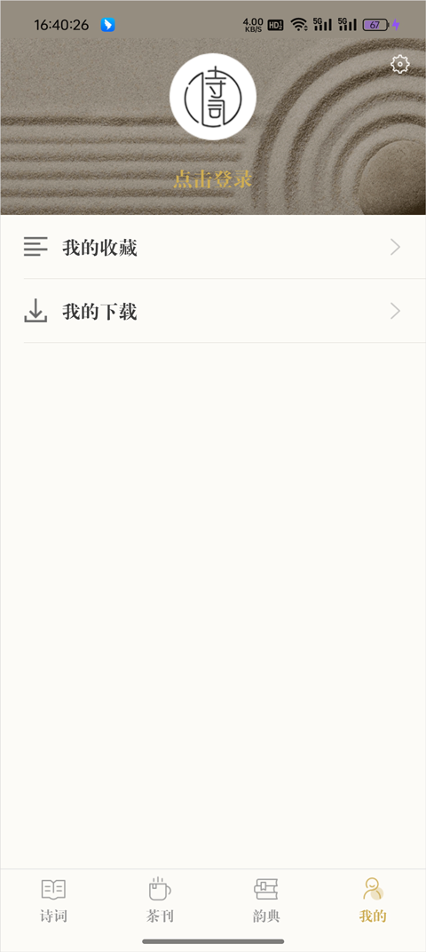 用户可以查看收藏的诗词以及下载记录。