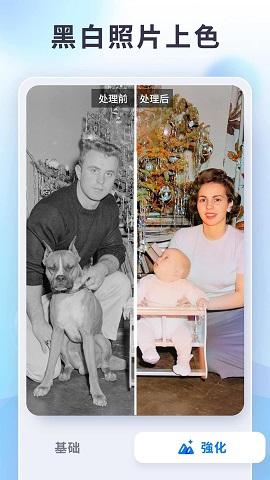3、支持老照片修复与上色,一键智能实现黑白照片转彩色并提升清晰度。