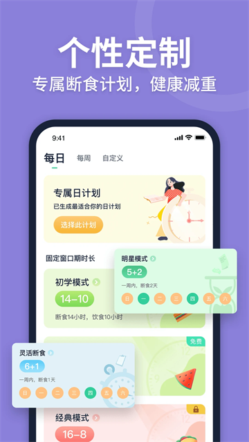 2. 根据个人数据生成科学轻断食方案,支持健康减重。