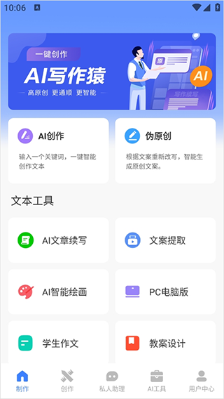 AI写作猿app免费版作为只能创作工具应用,通过深度优化的算法模型,将复杂的AI能力转化操作简单的智能创作,用户只需要打开应用,输入关键词或简要描述,即可快速获得结构清晰的文字输出。同时它的文本创作内容涵盖了公众号推文、日常工作总结、营销号文案设计、短视频创作脚本等常见场景,让用户可以轻松简单的完成这些工作。AI写作猿app免费版还依托先进的自然语言处理技术,写出来的文本内容语言流畅,绝无人机感。感兴趣的用户不妨下载尝试一番。