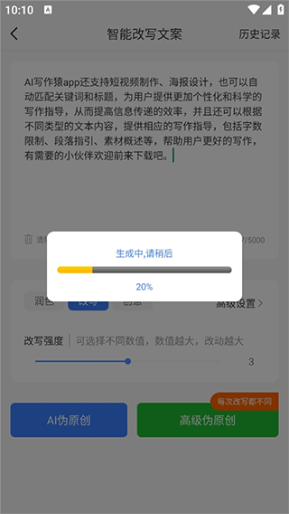 2、选择好了之后点击进入,将自己需要改写的内容复制进去,点击“ai伪原创”按钮。