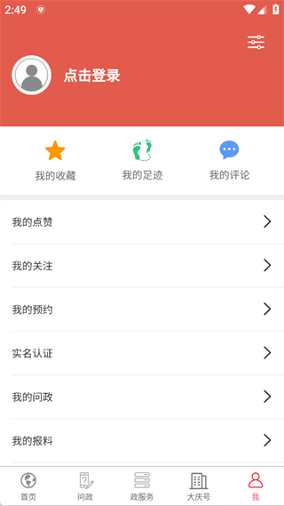 可查询个人收藏、足迹、评论等信息以及进行实名认证、问政、报料等操作。