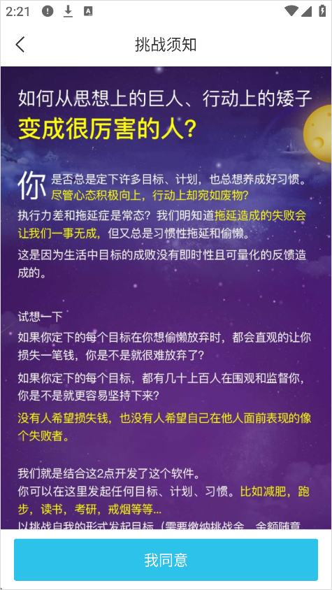 2、在弹出的提示中选择“同意”,进入目标设定页面。