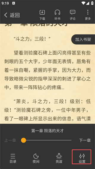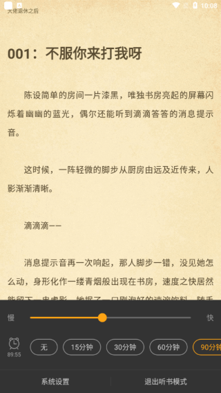 2、即可开始听书,可设定阅读快慢/听书时间等。